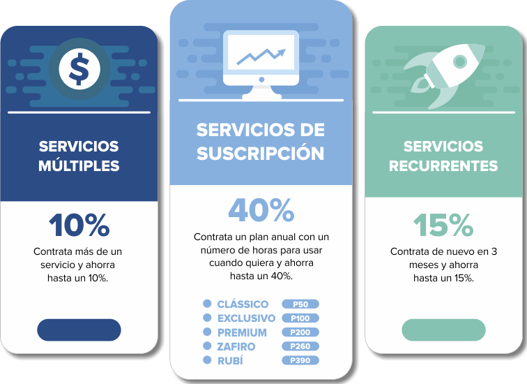 ¡Maximiza su presupuesto a través de nuestros exclusivos planes de servicio! Descubre nuestros planes anuales para usar cuando y como quiera: ¡ahorra hasta un 40%!